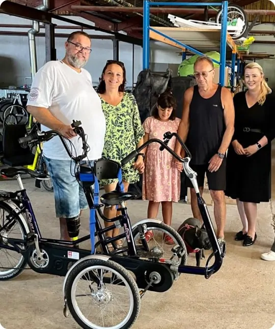 Kola pro osoby se zdravotním postižením: Tato iniciativa poskytuje přizpůsobená kola, čímž podporuje mobilitu, nezávislost a inkluzivitu.